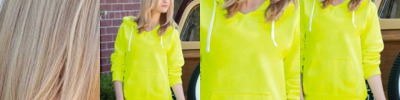 • Raw-edge seams on raglan shoulders, side gusset panels, pocket and waistband