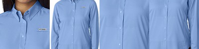 2.4 oz., 100% polyester ripstop fabric; Omni-Wick™; Quick-dry; Omni-Shade™; UPF 40 sun protection; Anti-microbial treatment protects this product from bacterial growth; Self-adhesive collar points; Snap buttons; Vented.