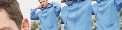 50% polyester, 37% cotton, 13% rayon; Sleeves feature two contrast stripes; Thick drawcord on hood; Rib-knit cuffs; Contoured bottom hem; No drawcord on XS;