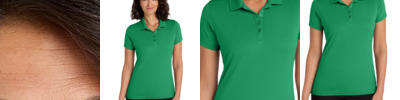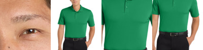4.8 oz., 100% micro-textured polyester knit; Anti-bacterial; Moisture-wicking; Relaxed fit; Flat-knit collar; 3-button placket;