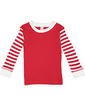 5.0 oz., 100% combed ringspun cotton 1x1 baby rib ; Heather is 88/12 combed ringspun cotton/polyester; White is sewn with 100% cotton thread; 5 oz. 100% combed ringspun cotton 1x1 baby rib; Heather is 88/12 combed ringspun cotton/polyester 1x1 baby rib; Ribbed collar and cuffs; Self-fabric back neck tape; Double needle bottom hem; Flatlock stitched seams; Side seam construction; EasyTear™ label; CPSIA compliant tracking label in side seam; Wear Snug Fitting. Not flame resistant. CPSC compliant yellow tag swift tacked to garment.; Machine washable/ tumble dry low; Fit: Infant Unisex; Note: Color descriptions indicate Body/Trim colors, e.g. Kelly/ Red indicates Kelly shirt with Red Trim;
