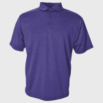 4.3 oz., 100% polyester heathered wicking knit top body, collar and sleeves; 3.3 oz., 100% polyester wicking knit solid body; Wicks moisture away from the body ; Tagless label; Contrast self-fabric collar, placket, and yoke; Contrast set-in sleeves ; Box-stitched placket ; Three matching buttons with cross-stitching;