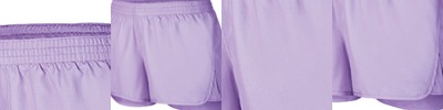Shell is 100% polyester micropoly ; Inserts are 100% polyester mesh ; Lining is 100% polyester wicking crepe ; Liner wicks moisture ; Junior fit ; Low-rise; Covered elastic waistband with inside drawcord ; 3.5" inseam;