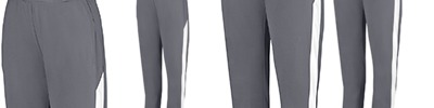 Heavyweight 100% polyester matte brushed tricot ; Ladies' fit ; Heat-seal label; Covered elastic waistband with inside drawcord ; Side seam pockets ; Back yoke ; Contrast color side inserts ; Matching top style 4388;