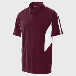 100% polyester; Smooth knit with true hue technology™ on front and back panels; 92% polyester /8% spandex pinhole mesh inserts for breathability ; True hue technology™ prevents dye migration; Wicks Moisture; Pad print label ; Two-button placket; Contrast color inserts and piping ;