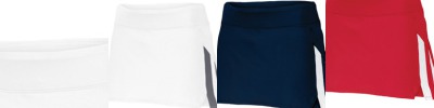 84% polyester/16% spandex knit kilt; 88% polyester/12% spandex heavyweight knit short; Wicks moisture; Odor resistant ; Ladies' fit; Pad print label; Low-rise, wide flat waistband for secure fit and comfort;