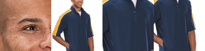 5 oz./yd2 / 172 gsm, 100% polyester face plaited to 60% polyester, 40% cotton back (total overall garment 61% polyester, 39% cotton); Proprietary dual-sided mesh pique knit constructed of fine denier wicking polyester on the outside and soft-as-cotton wicking blend on the inside; Moisture-wicking performance with UV 15-39 protection; Three-button placket; Dyed-to-match buttons; Matching flat-knit collar with contrast double tipping; Hi-low hemline; Side vents; Active fit; Easy care;