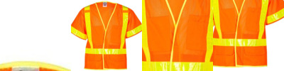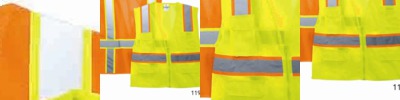 4 oz., polyester mesh; 2" reflective tape; ANSI/ISEA 107-2015 Type R Class 2 Certified; Hook/loop front closure; Adjustable snaps on side seam; Banded armholes, neck opening, and waist;