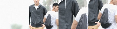• Patented 2-in-1 hoodie converts into functional drawcord backpack in seconds