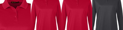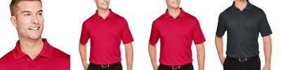 5 oz./yd2 / 172 gsm, 100% polyester face plaited to 60% polyester, 40% cotton back (total overall garment 61% polyester, 39% cotton); Proprietary dual-sided mesh pique knit constructed of fine denier wicking polyester on the outside and soft-as-cotton wicking blend on the inside; Moisture-wicking performance with UV 15-39 protection; Three-button placket; Dyed-to-match buttons; Matching flat-knit collar with contrast double tipping; Side vents; Active fit; Easy care;