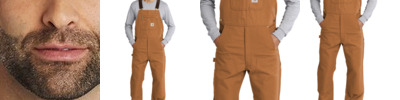 - Carhartt label sewn on bib pocket