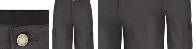 • Welt back pockets and pleated cargo pockets with hidden snaps