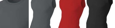 5 oz., 80% polyester, 20% Spandex; Moisture-wicking to keep athletes cool; Stain-release and odor-resistant for easy care; 4-way stretch fabric; Heat-seal tag; All seams flat-lock stitched; Rash guard protection;