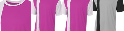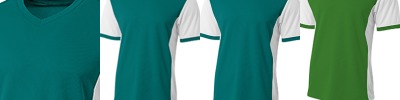 4-way stretch fabric; 5 oz., 80% polyester, 20% spandex; Moisture-wicking to keep athletes cool; Poly blend for max performance; Stain-release and odor-resistant for easy care; Heat-seal tag; All seams flat-lock stitched; Rash guard protection;