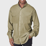 Best wash and wear shirt in the market. 4.2 ounce, 52/48 cotton/poly, stain & wrinkle resistant lightweight performance fabric. Two extra large chest cargo pockets and two additional lower pockets with extra loops to carry all of your fishing accessories. Vented back allows air to circulate freely and enhances freedom of movement. Back has Velcro closure for easy embroidery. Wood-tone buttons. Available in 20 solid colors XS-7XL.