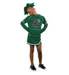 100% polyester double knit * Girls fit * Covered elastic waistband * Contrast color pressed box pleats with yoke