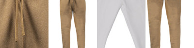 7.8 oz. 100% Polyester fleece; Side pockets; Elastic waist and bottom cuff; Drawstring closure; Back right hook and loop pocket;